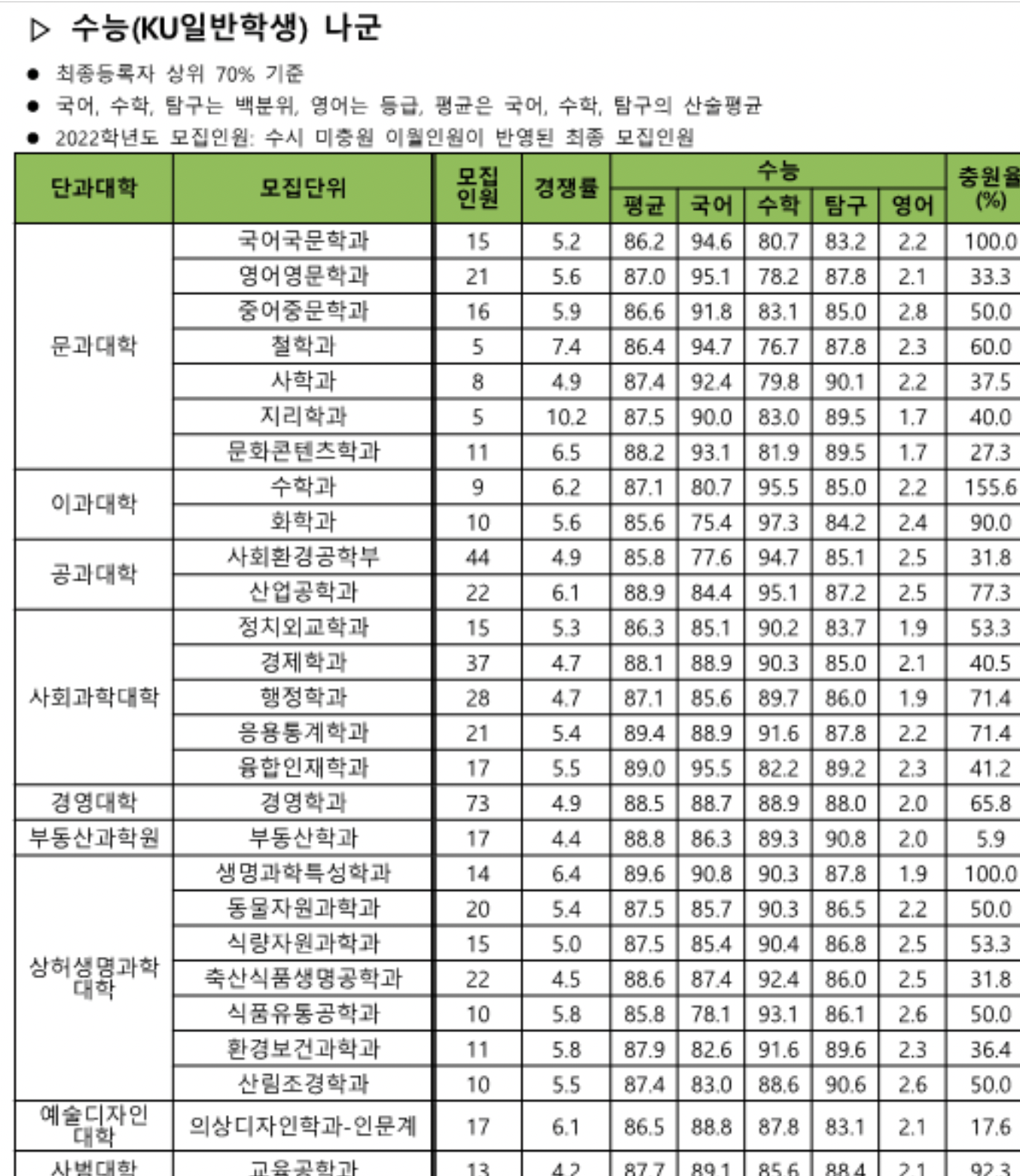 건국대학교 2022학년도 입결