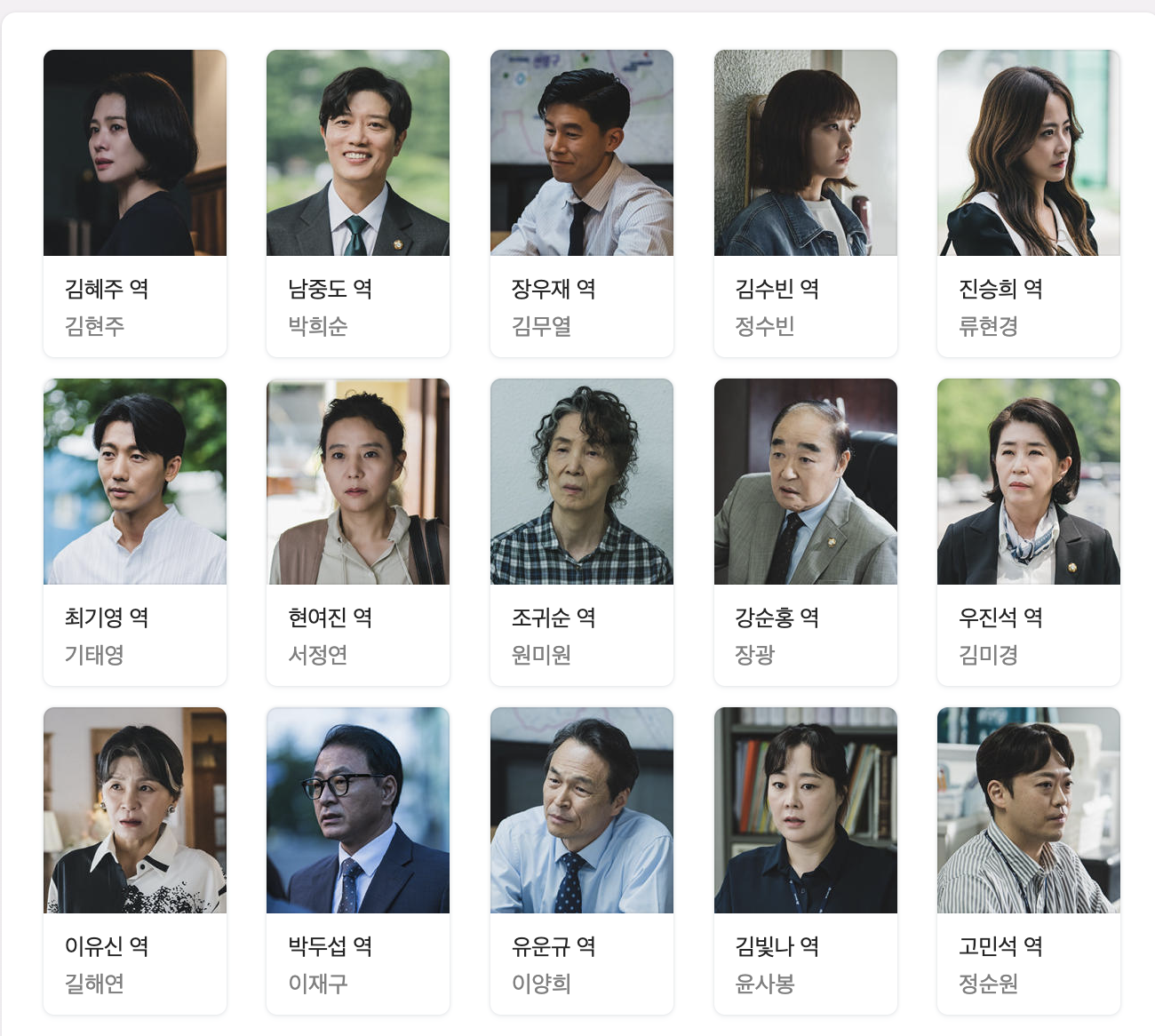 오랜만에 본 배우 김현주가 반갑기도 반가웠는데 김현주 말고도 박희순, 김무열 등 연기파 배우들의 대거 등장에 호기심이 반짝! 하더라구요. 공식홈페이지에서는 '출연' 란에 김현주, 박희순, 김무열, 정수빈까지 표기되어 있는 것을 보니 이 네 사람이 트롤리의 주연 역할인 것 같습니다. 이 밖에도 SES 유진의 남편인 기태영, 현재 재벌집막내아들에서 진도준의 친엄마 역할을 맡아 열연중인 배우 서정연과 늘 정치인 역할을 도맡아하는 배우 장광까지 출연하네요.