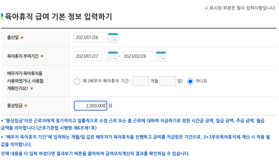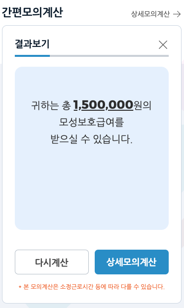 마지막으로 모의계산을 할 수 있는 페이지를 남겨놓도록 하겠습니다. 필요하신 분들은 꼭 모의계산부터 해 보시고 육아휴직 신청하시길 바랍니다. 감사합니다.