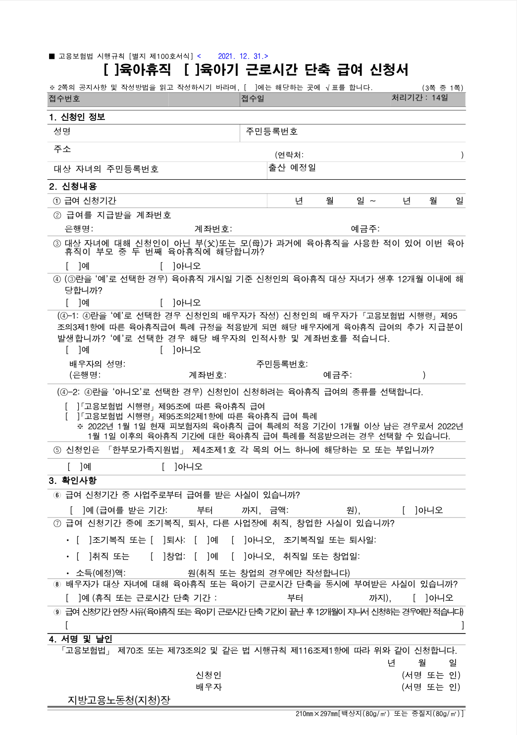 ⬇︎⬇︎⬇︎⬇︎ 육아휴직 급여신청서 ⬇︎⬇︎⬇︎⬇︎