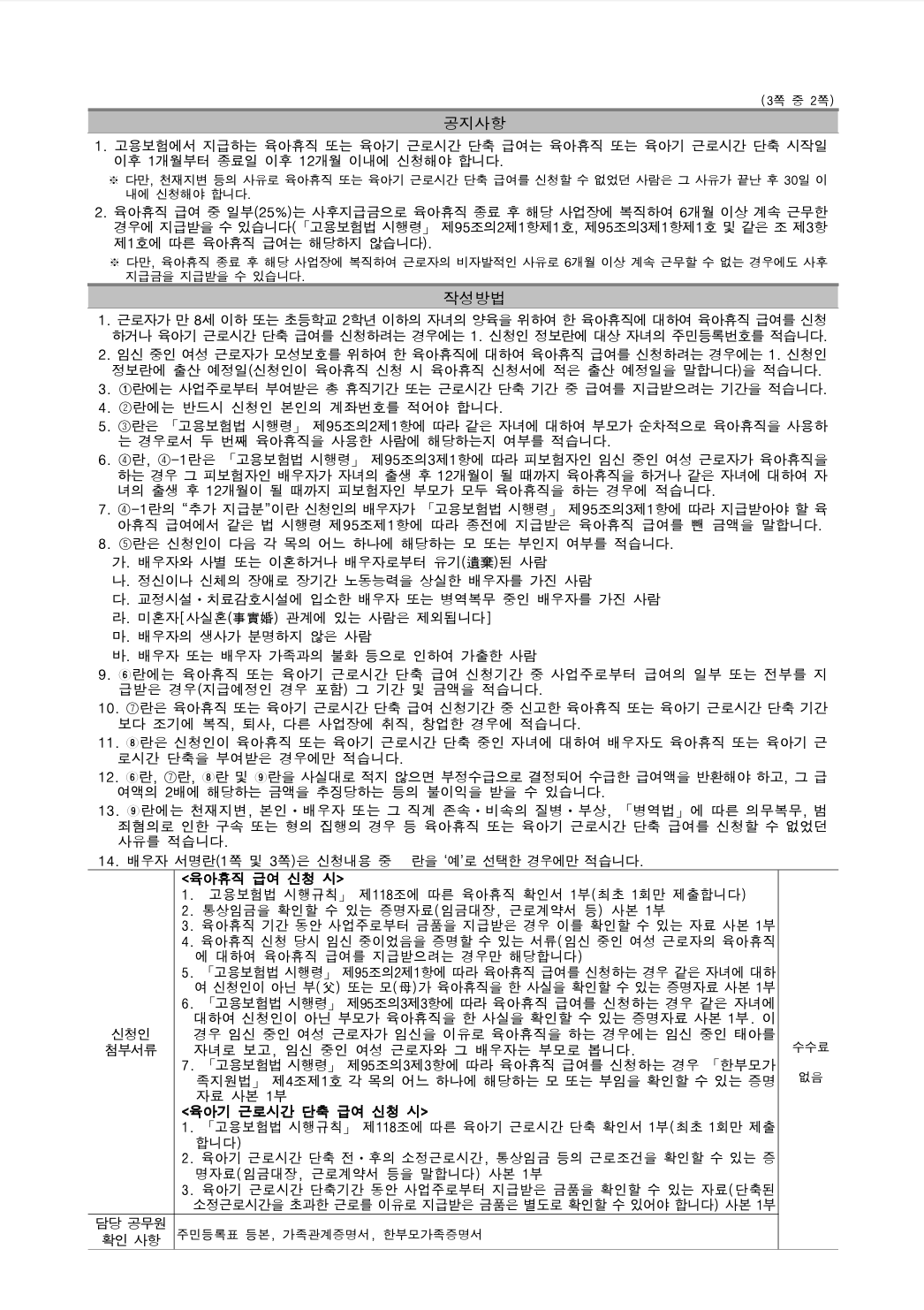오늘은 육아휴직 확인서, 급여신청서 양식을 가져왔습니다. 쉽게 다운로드 받으실 수 있도록 준비해두었으니 꼼꼼히 작성하셔서 신청하시길 바랍니다.
