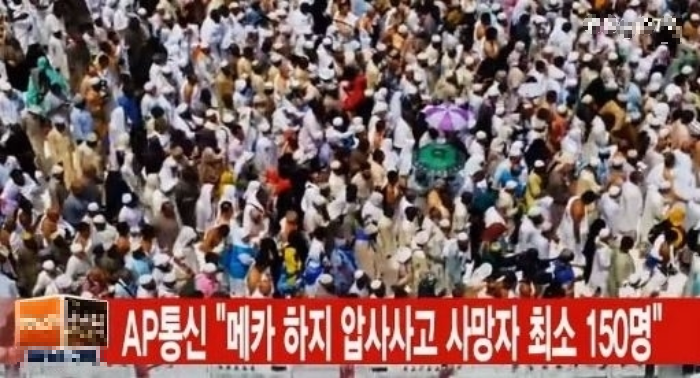 공식적으로 통계를 냈을 때 역대 가장 희생자가 많았던 사건은 1990년 7월 사우디아라비아 사고이다. 이슬람의 성지인 사우디아라비아 메카 근처에서 성지순례 ‘하지’기간에 이어지는 ‘이드 할 아드하’ 기간 중 일어난 사고로, 무려 1,426명이 압사했다. 메카로 가는 길 중 터널이 하나 있는데 그 곳으로 사람들이 몰려들며 순식간에 벌어진 일이다.