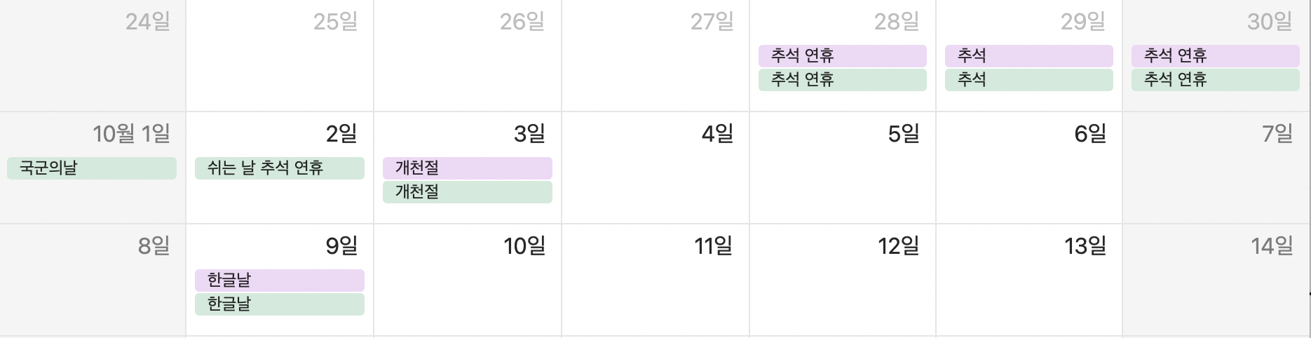 9~10월 : 추석연휴, 개천절, 한글날