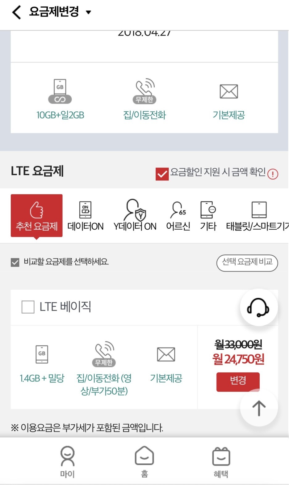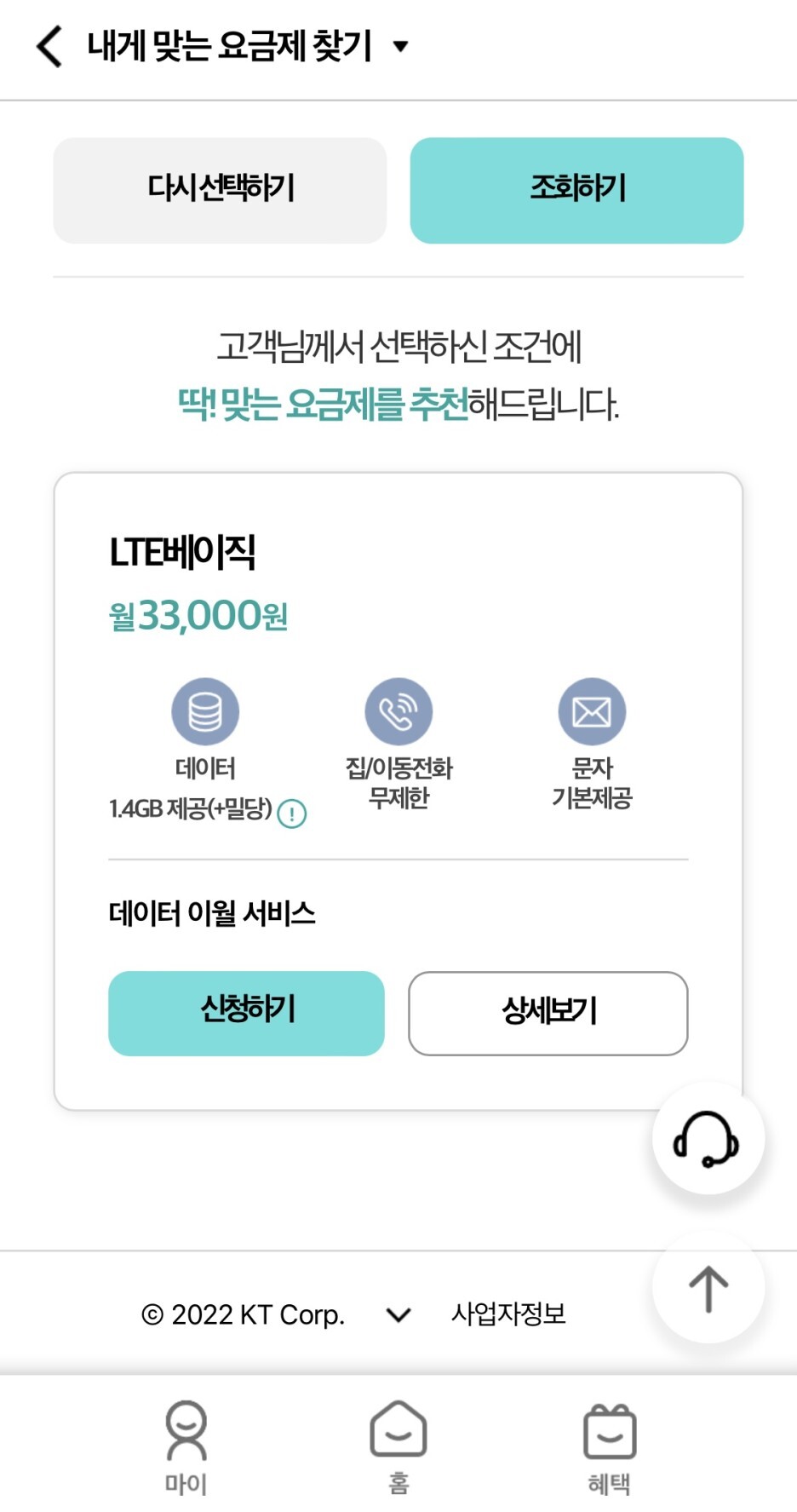 가장 적합한 요금제를 추천해주더라구요! :-)