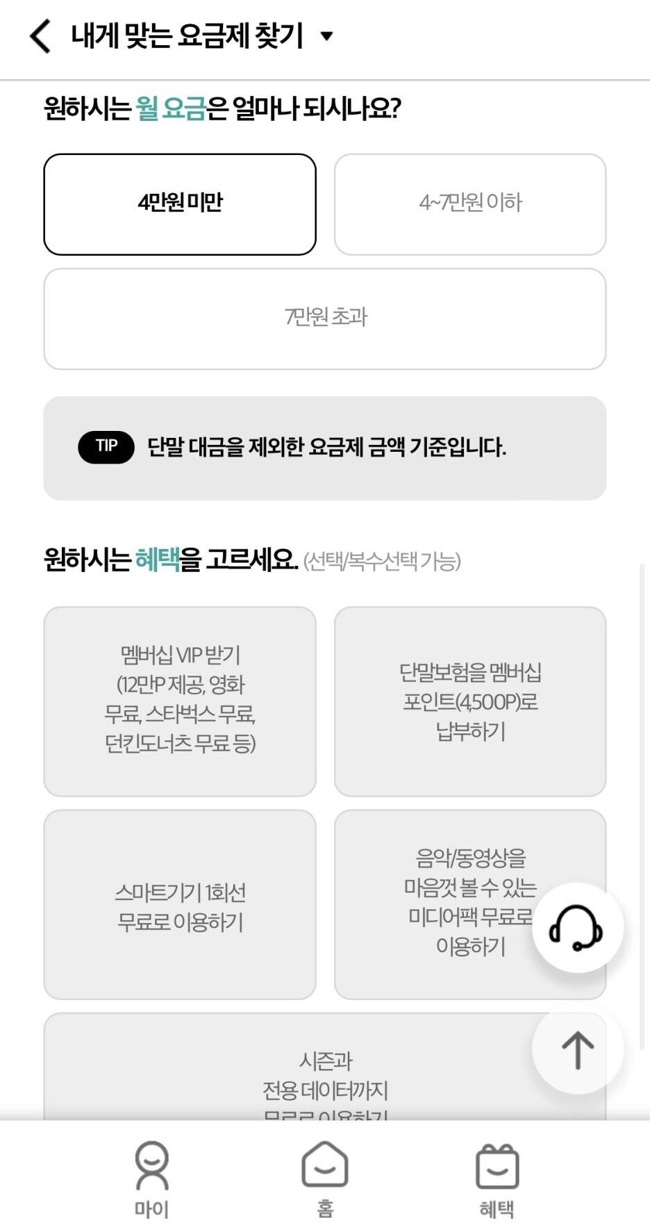 내게 맞는 요금제 찾기
