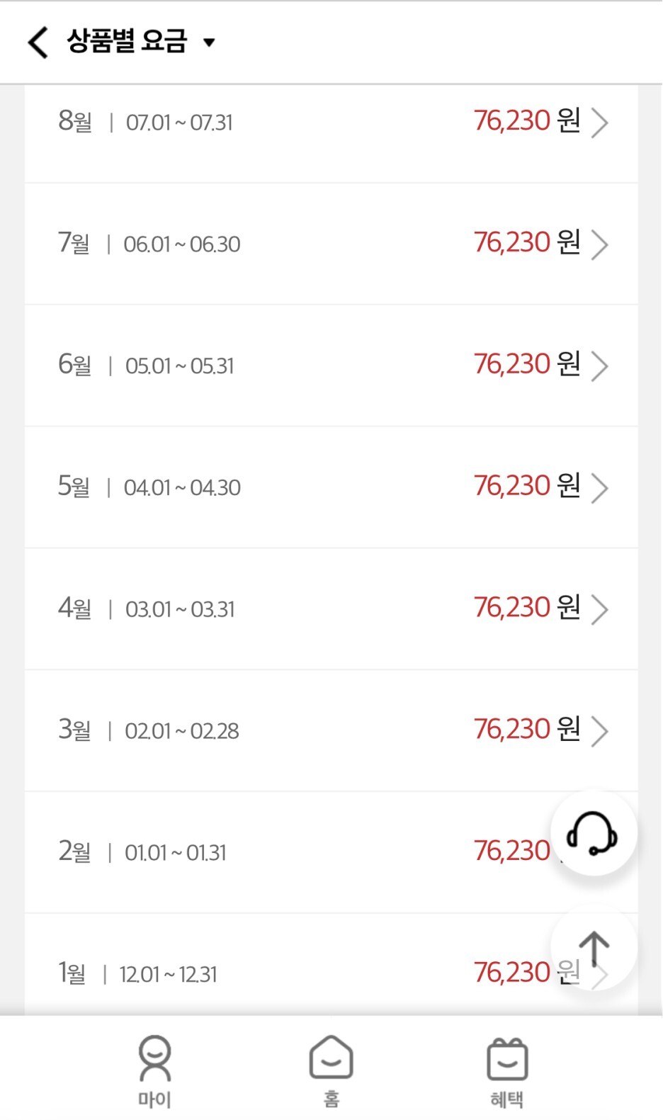 결국 8만원 정도 되는 돈을 매달 내고 있었어요.