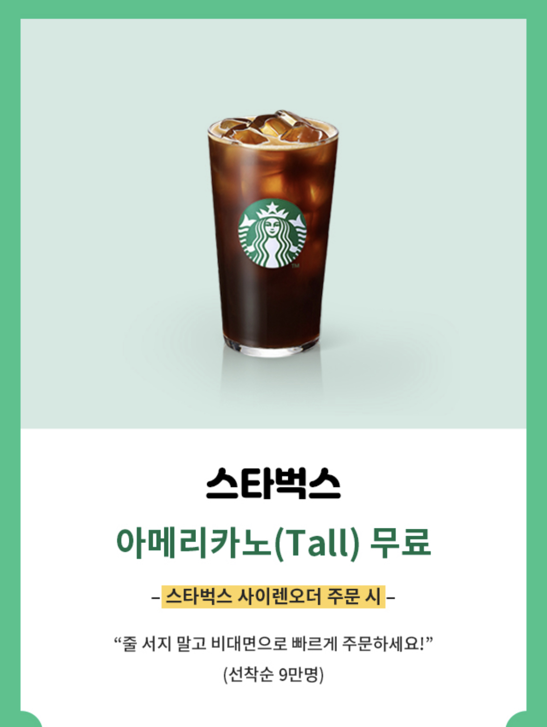 스타벅스 사이렌오더 사용 시 무료로 아메리카노를 즐길 수 있는 방법 알려드릴게요!